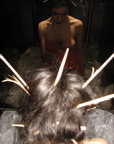 As a shadow I jump onto all walls – onto lonely, rough, hungry, fill ones. My shadow wants to swim; and knows how to swim, not only in the idea, but also in flesh. It is like a fish that both follows and leads my body. Swimming amongst my shadows I swim from one room to another along the walls, where one room does not only reflect but also resonate the other, the echo remaining on the walls even after the meat of my body has already moved along, revealing the state in which the body is becoming the shadows, and the shadow the body. How much veiling is necessary for the body to be seen as evasive and how much unveiling is necessary for the shadow to reveal the fleshiness within its constitution? My photo-frescoes swim around along the walls, searching for the answer…