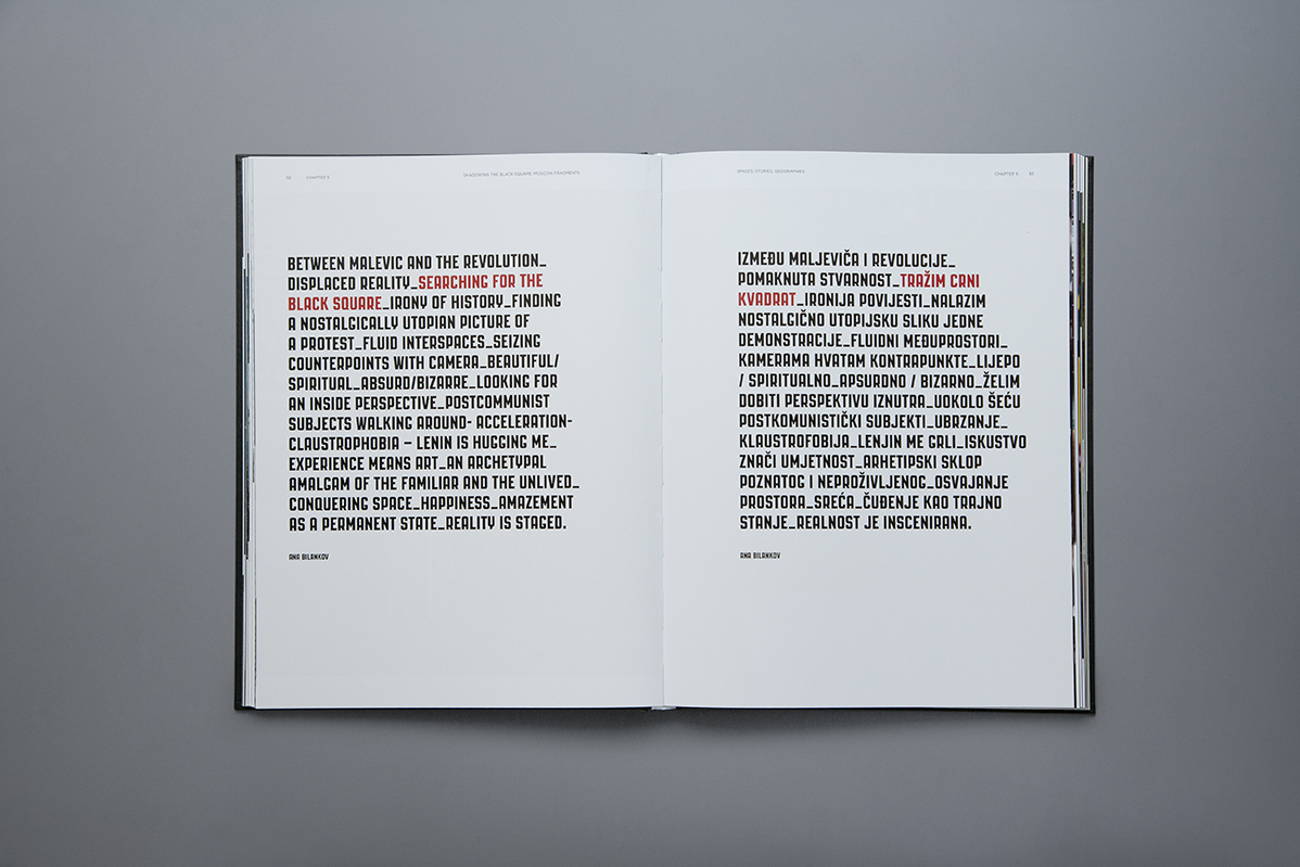 Ana Bilankov’s first comprehensive monograph and at the same time an artist’s book is structurally conceived as a kind of experimental film, a non-chronological ‘storyboard’ of her conceptual art works made in the media photography, video / experimental film, installation and text in the last twenty years. Structured into ten chapters, the book raises a series of questions on the subject of poetics/politics of dislocation, migration, nomadism, individual and collective memory and construction of identity within “in-between-ness”. Many projects have emerged in diverse geographic contexts thanks to several international residencies in different European cities, Moscow and New York, or in both of the author’s hometowns, Zagreb and Berlin.