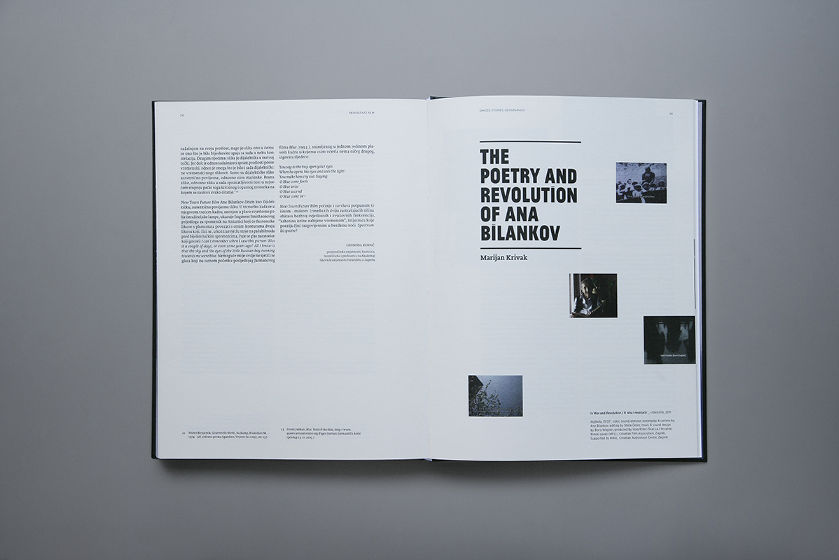 The book includes rich photographic and video material as well as the texts written by the author and also two theoretical essays: “Some Future Film” by the art theorist Leonida Kovač and “The Poetry and Revolution of Ana Bilankov” by the film theorist and philosopher Marijan Krivak, and has been designed by Hamper studio Zagreb.