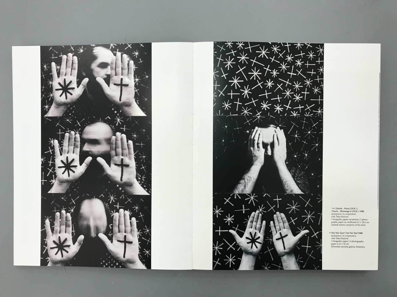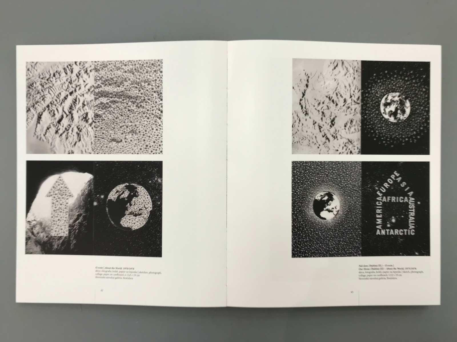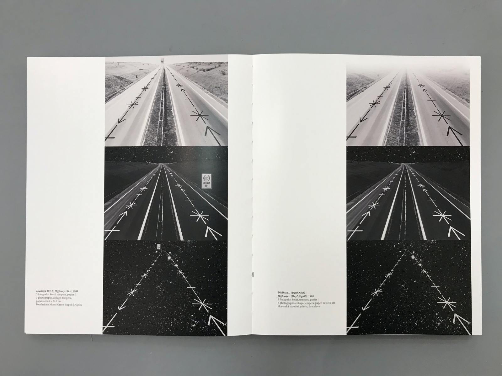 Rudolf Sikora is one of the most important conceptual artist in Slovakia. The book is divided into several logical units being dominated by the reproduction of works of authors who are listed chronologically. The harmony of the gallery sometimes are break with texts by curators, which also form the bulkheads in the book. Reproductions are designed individually, and each double-page is made with the same principles. However, none of the facing pages are similarly. The whole book is used two columns layout that varies with nuances. The book cover is a strip with photography that overlaps exactly two lines of text on the case. Overwrap, therefore, gives us a free hand in the creation of another visual book.
