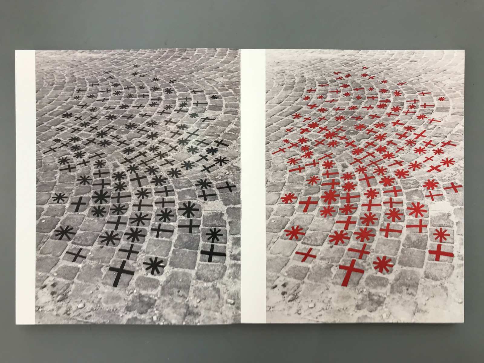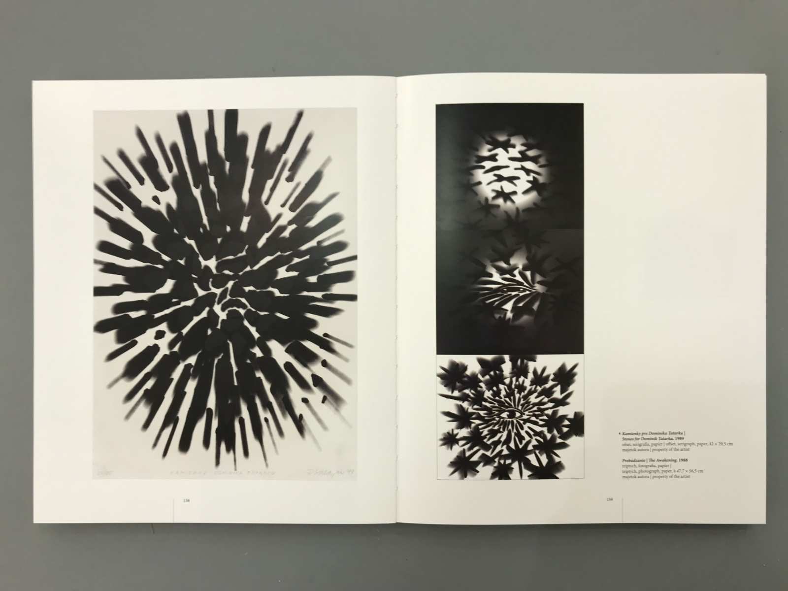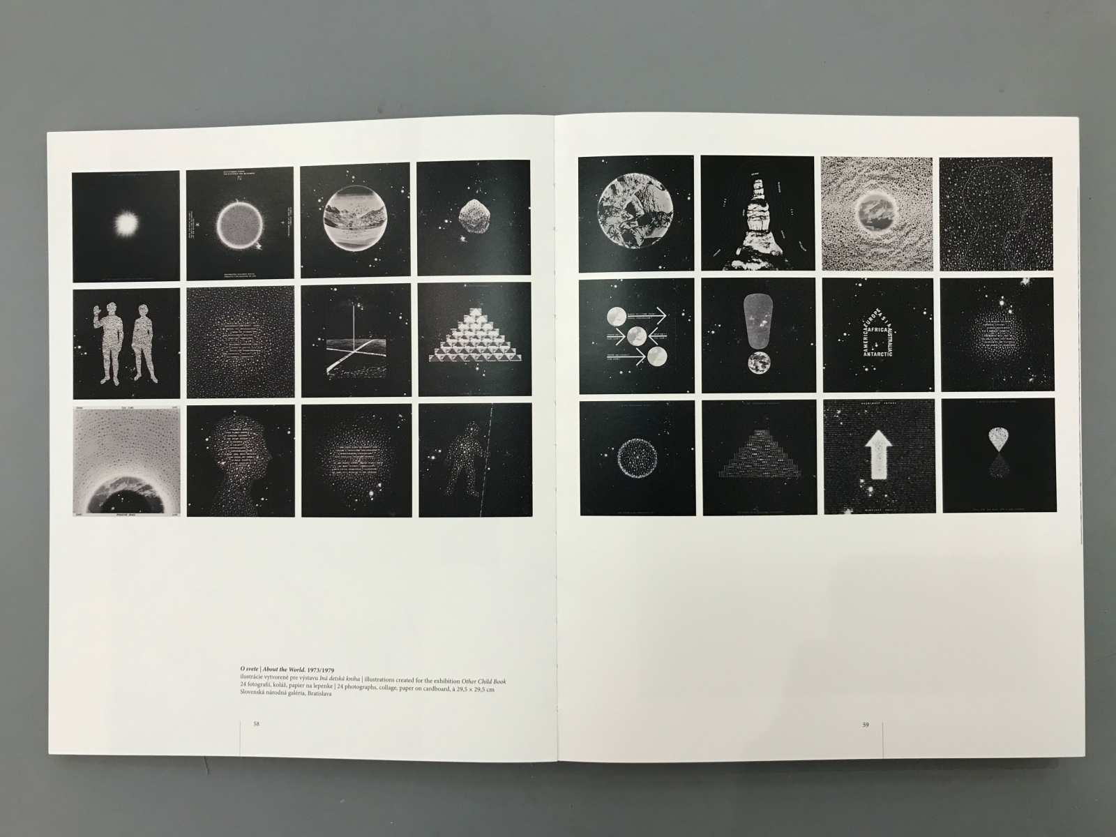 Rudolf Sikora is one of the most important conceptual artist in Slovakia. The book is divided into several logical units being dominated by the reproduction of works of authors who are listed chronologically. The harmony of the gallery sometimes are break with texts by curators, which also form the bulkheads in the book. Reproductions are designed individually, and each double-page is made with the same principles. However, none of the facing pages are similarly. The whole book is used two columns layout that varies with nuances. The book cover is a strip with photography that overlaps exactly two lines of text on the case. Overwrap, therefore, gives us a free hand in the creation of another visual book.